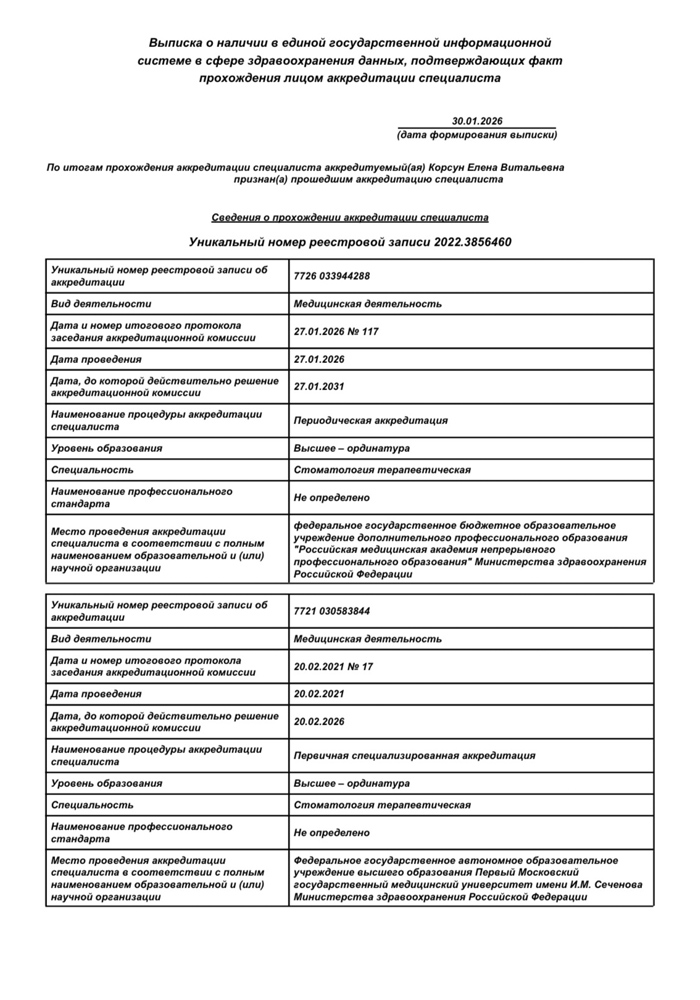 2018-2020 закончила с отличием ФГБОУ ВО РостГМУ ординатуру по специальности врач стоматолог-терапевт