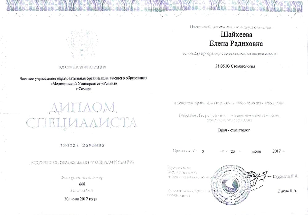 2017 г. - ЧУО ВО медицинский университет «РЕАВИЗ» г.Самара факультет «стоматология»