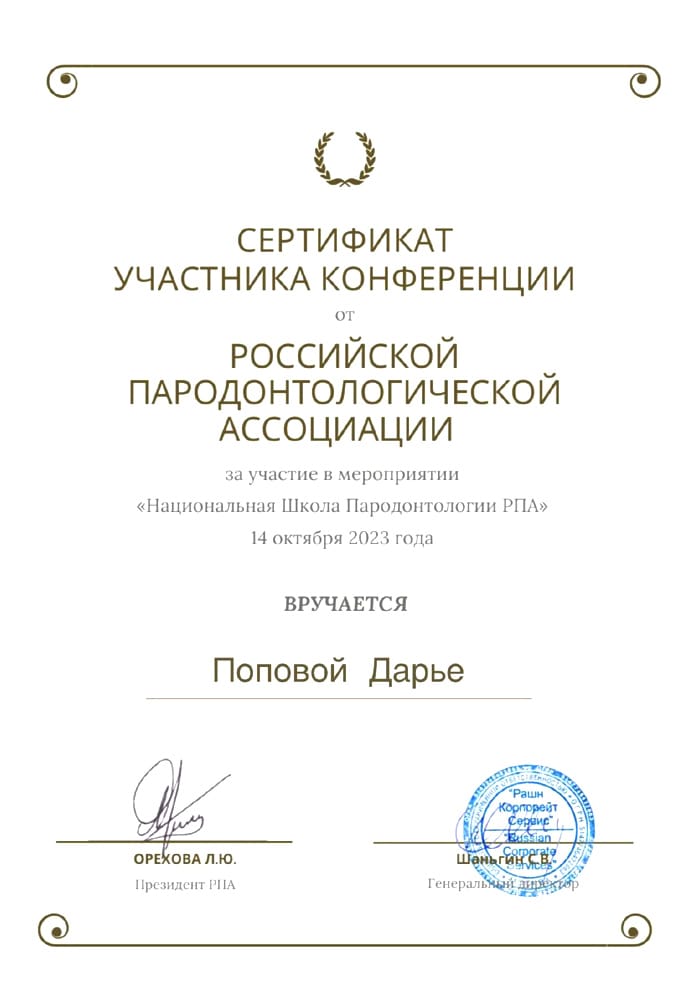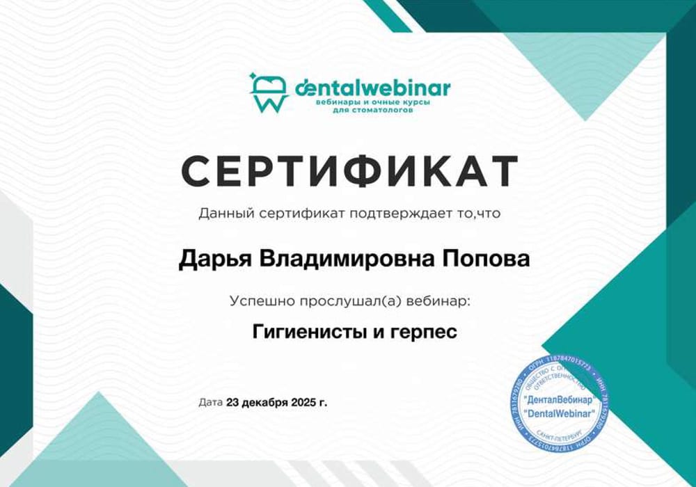 2023 г. - повышение квалификации гигиенист-стоматологический