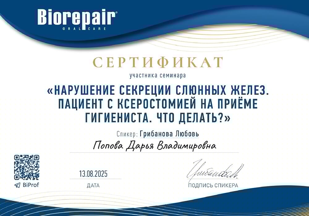 2023 г. - повышение квалификации гигиенист-стоматологический
