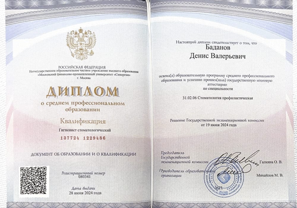 2024 г. - Окончил Негосударственное образовательное частное учреждение высшего образования «Московский финансово-промышленный университет «Синергия» г. Москва
