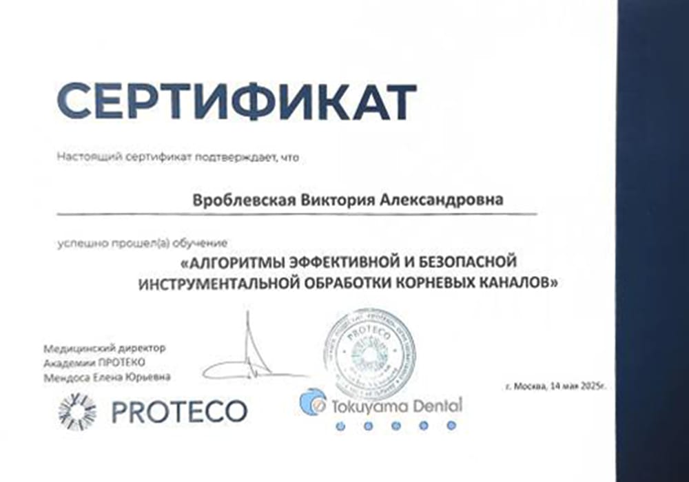 - «Алгоритмы эффективной и безопасной инструментальной обработки корневых каналов», Proteco TOKUYAMA DENTAL