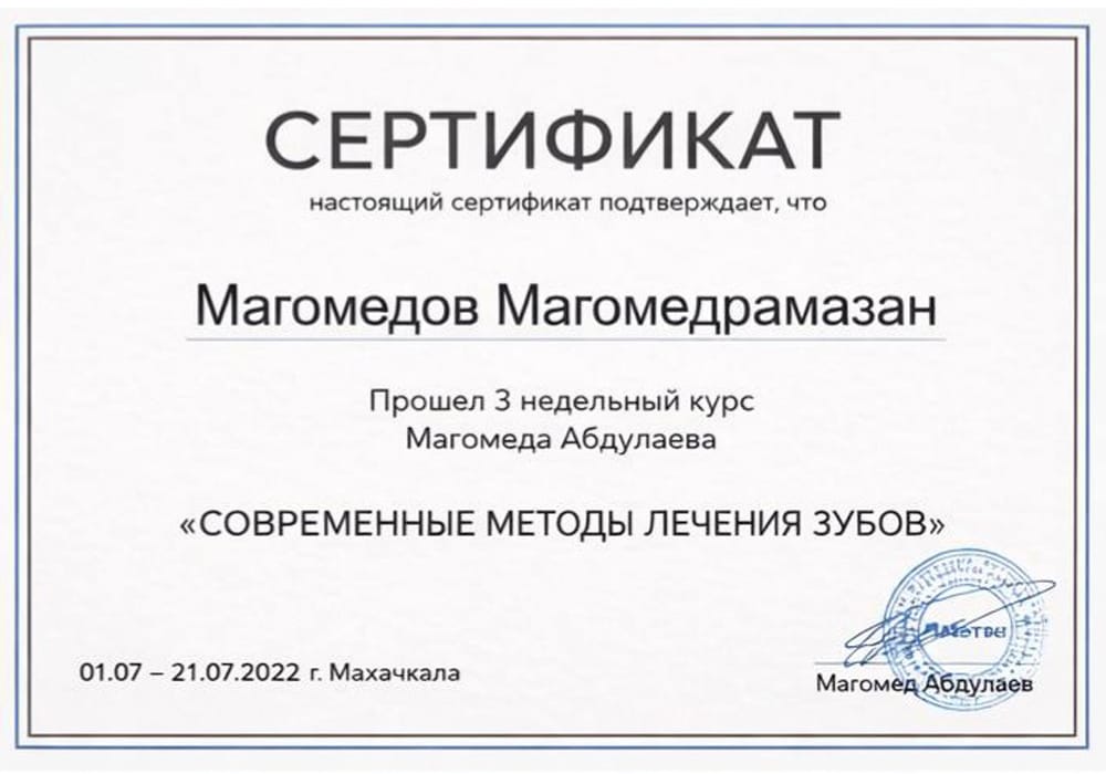 2022 г.- Современные методы лечения зубов Абдулаев М.