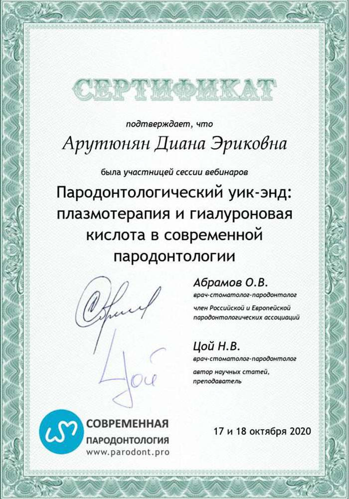 - «Плазмотерапия и гиалурлновая кислота в современной пародонтологии», Абрамов О.В., Цой Н.В.;