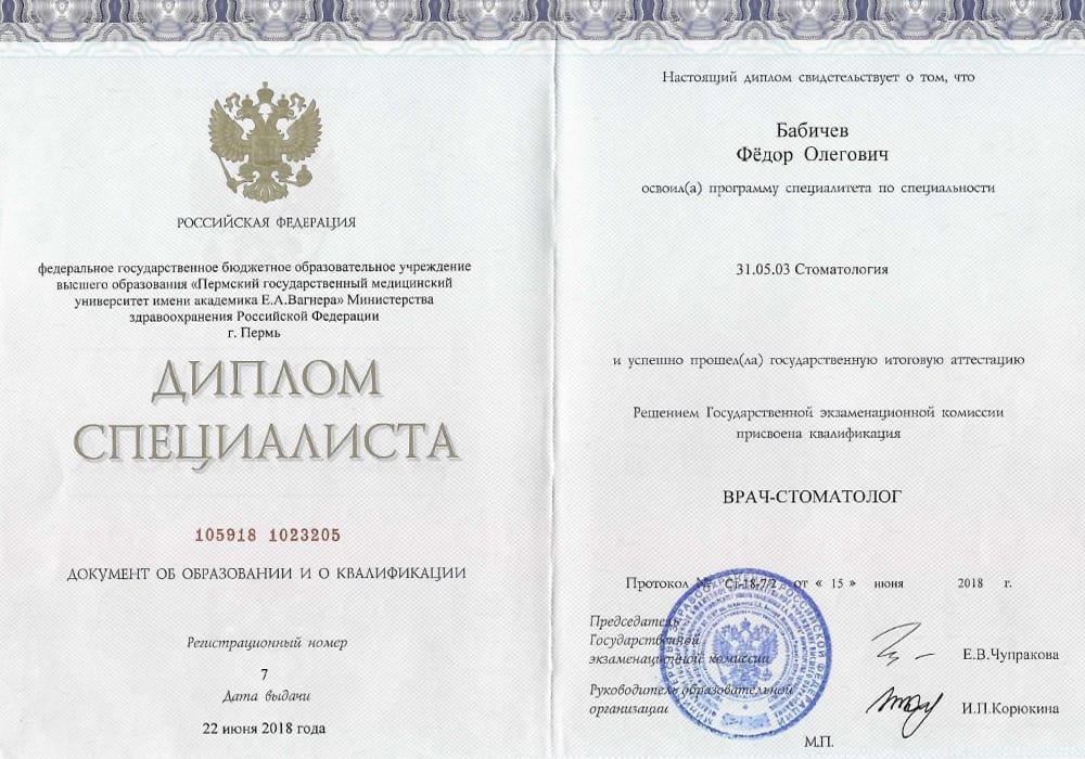 2018 г. – окончил Пермский Государственный Медицинский Университет