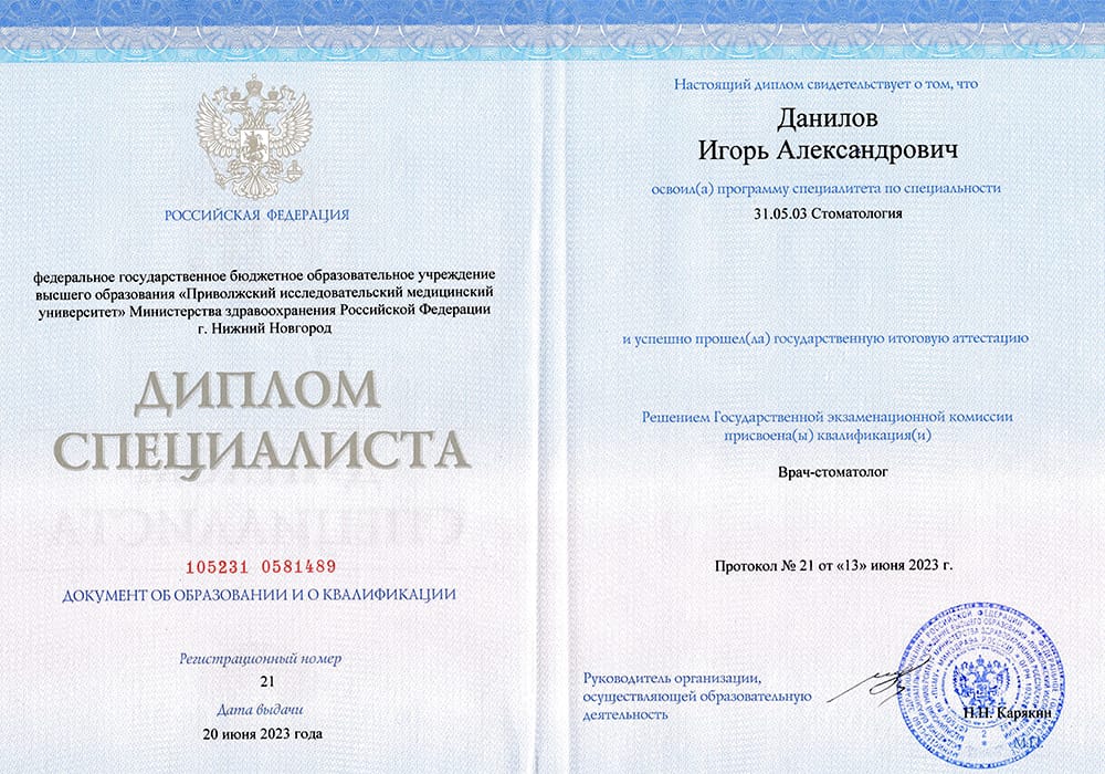 2023 г. - ФГБОУ ВО "ПИМУ" Минздрава России г. Нижний Новгород Стоматологический факультет