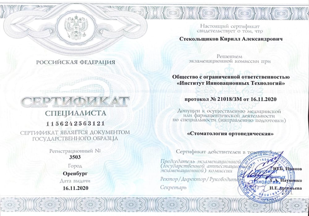 2016 г.- специализация по хирургической и ортопедической стоматологии. Чувашский государственный университет им. И.Н. Ульянова, Чебоксары