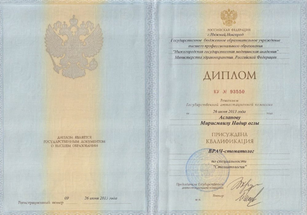2014 г.- закончил интернатуру по специальности « врач-стоматолог» в Приволжском исследовательском медицинском университете