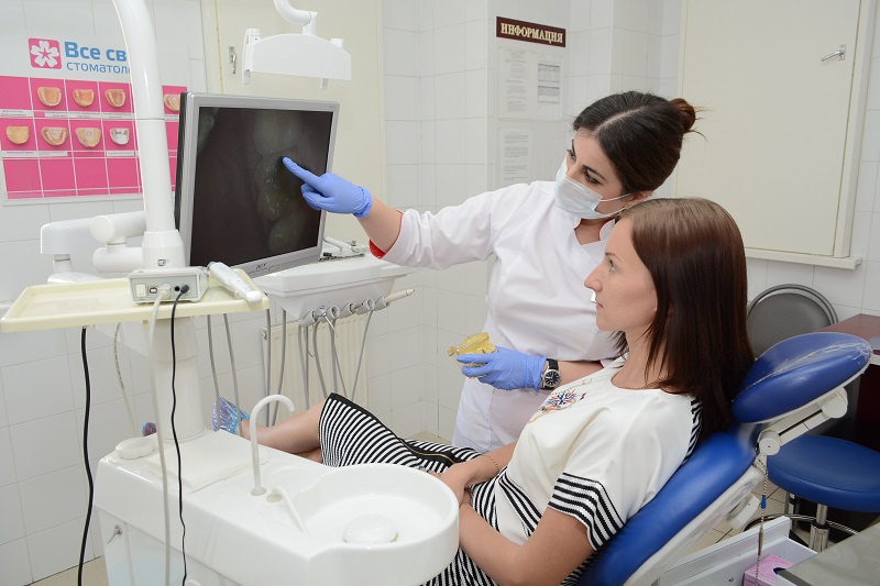 На консультации доктор осмотрит Ваши зубы и десны и проведет предварительную диагностику. Вам предложат сделать панорамный рентгеновский снимок обеих челюстей – ортопантоммму, который позволяет увидеть недоступные участки зубов и десен. Снимок поможет выявить прикорневой и межзубный кариес, оценить состояние костной ткани челюстей, уточнить форму и размеры пародонтальных карманов, увидеть положение зубов и корней при неправильном прикусе, а также понять, в каком состоянии находятся пролеченные ранее зубы.